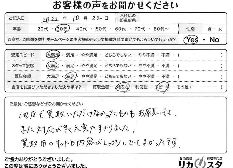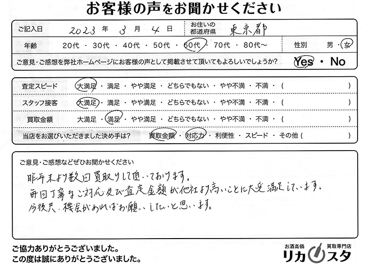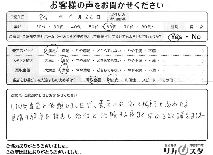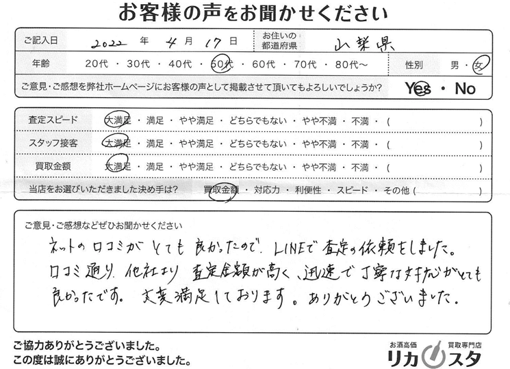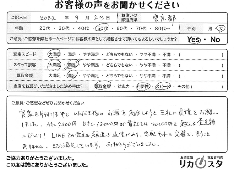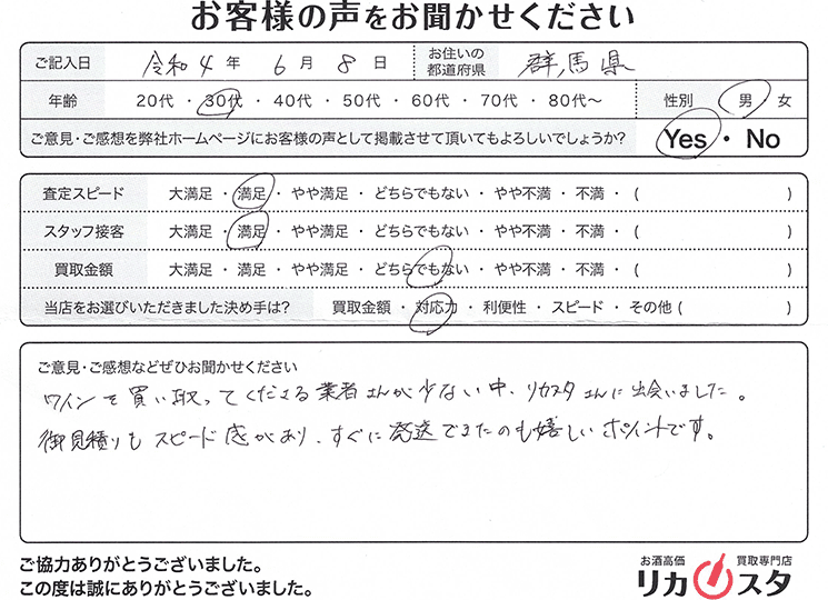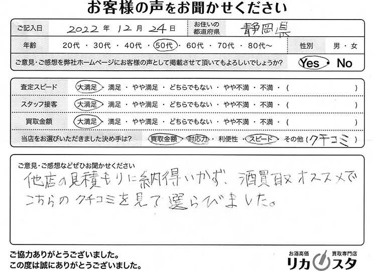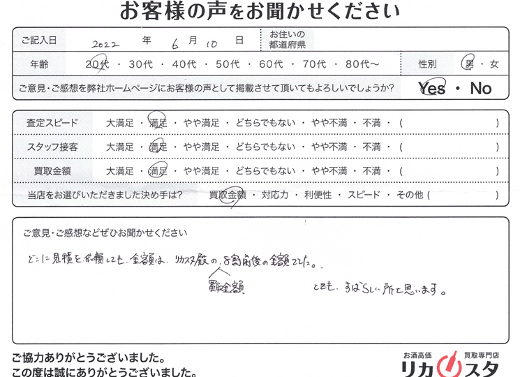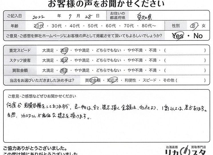 お客様コメント 他店の見積もりに納得いかず、 酒買取 オススメ でこちらのクチコミをみて選びました。 スタッ […]