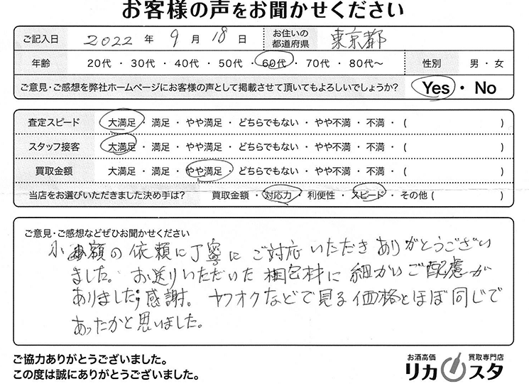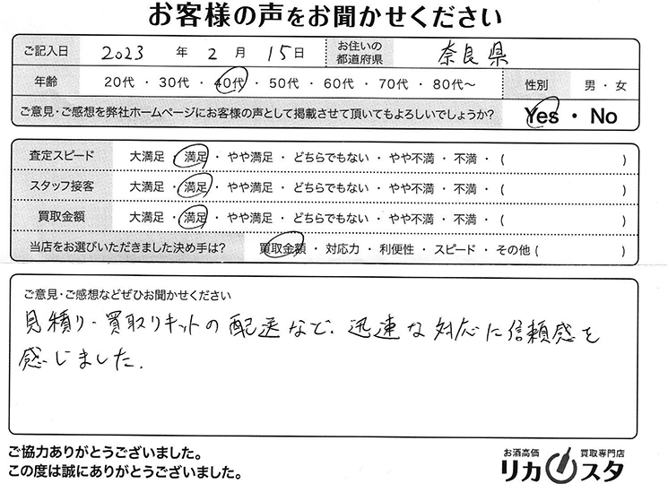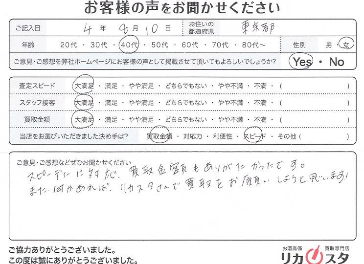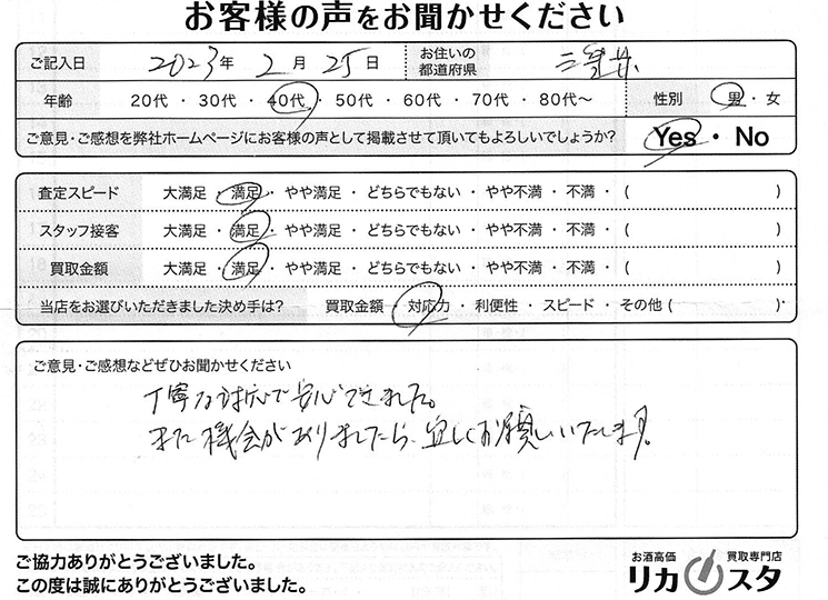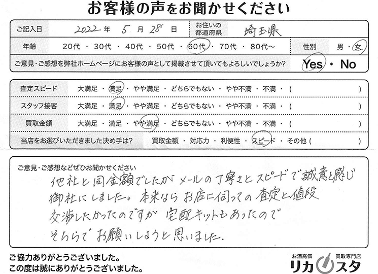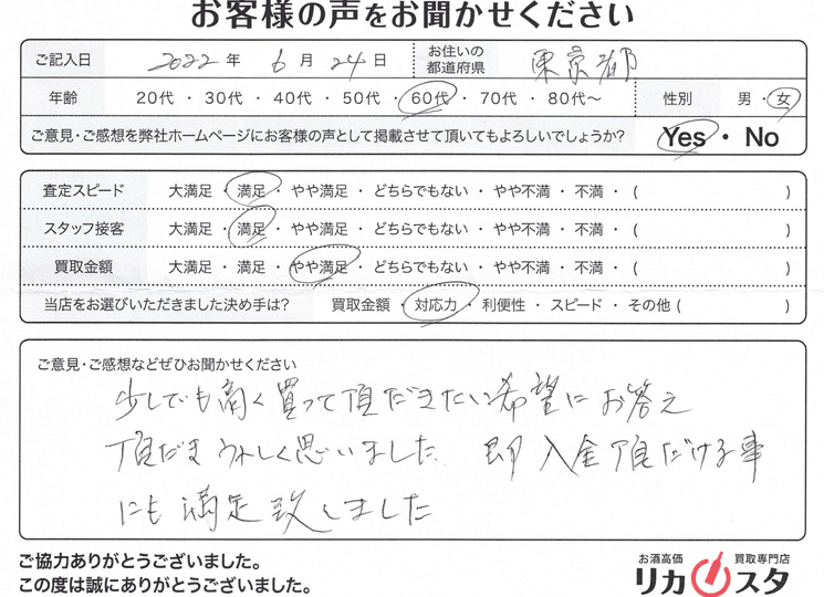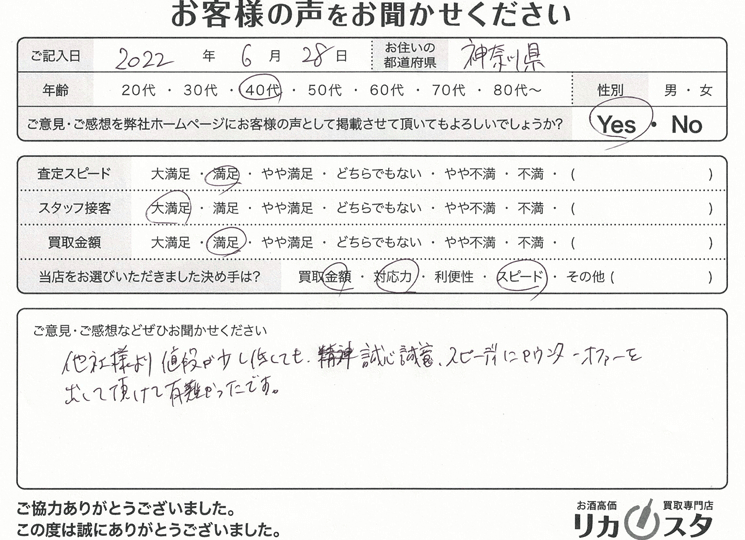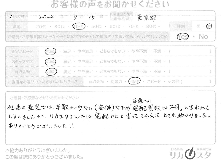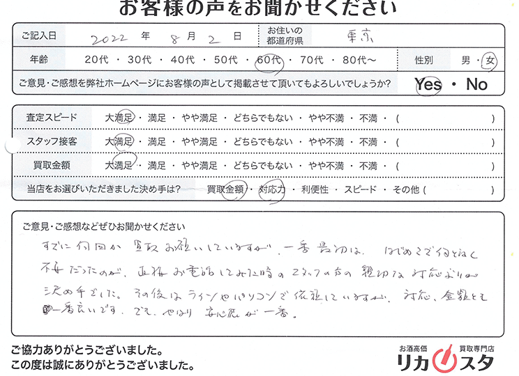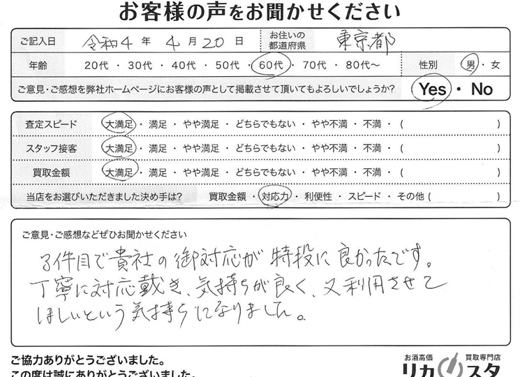 お客様コメント 他店の見積もりに納得いかず、 酒買取 オススメ でこちらのクチコミをみて選びました。 スタッ […]