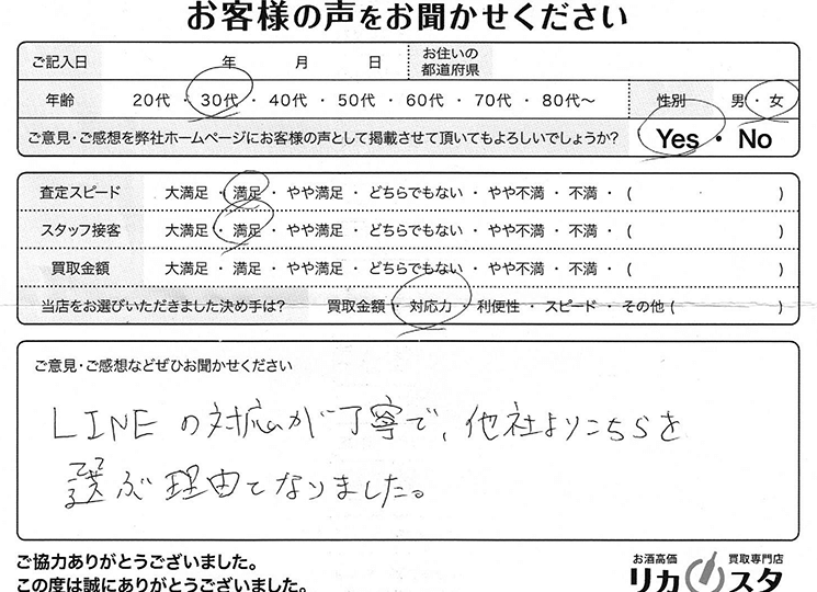 お客様コメント LINEの対応が丁寧で、他社よりこちらを選ぶ理由となりました。 スタッフ この度は当店をご […]