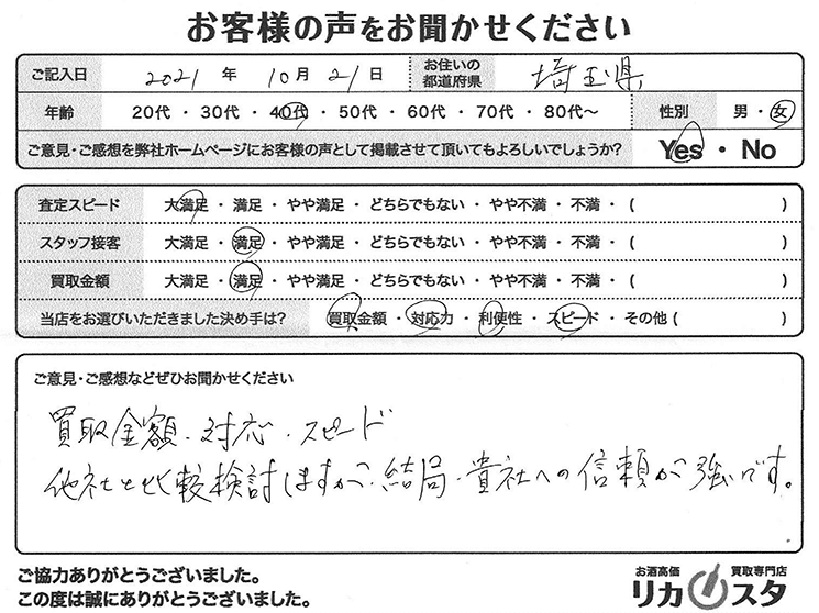他社と比較検討しますが、結局貴社への信頼が強いです。