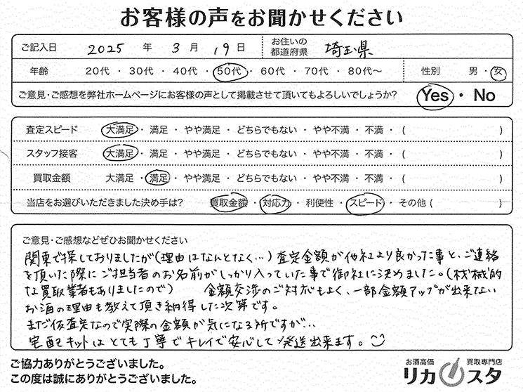 買取金額と宅配キットにご満足いただけたようで嬉しく思います!