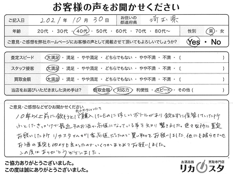 他にも眠らせていたお酒の査定も他よりも良かったのでいくつかまとめてお願いしました。