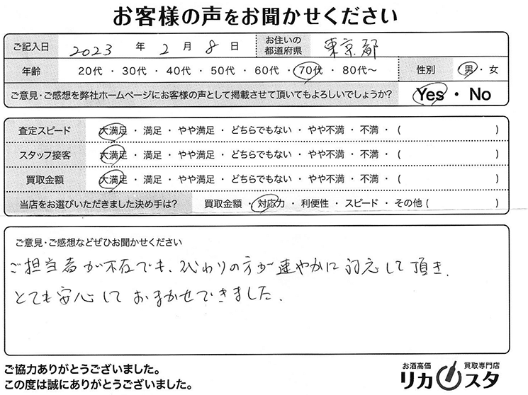 スタッフの対応にご満足いただき安心してご利用いただけたご様子で、大変うれしく思います!