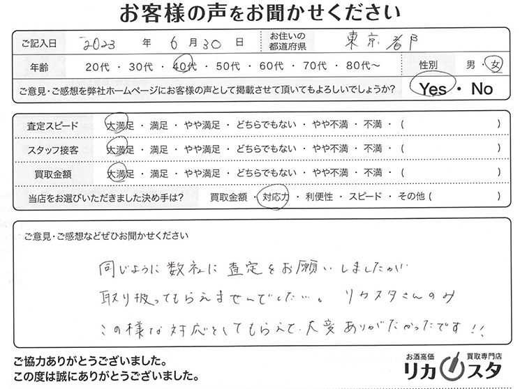 今回は、東京都にお住いのお客様よりお買取りさせていただきました。