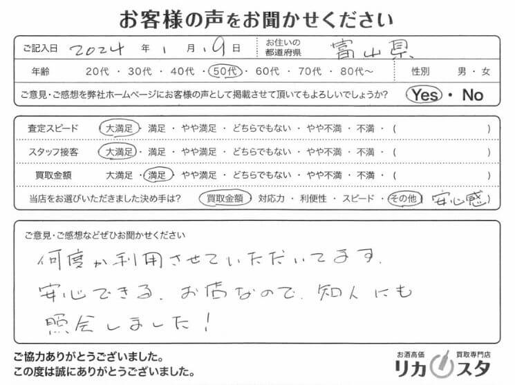 今回は、富山県にお住いのお客様よりお買取りさせていただきました。