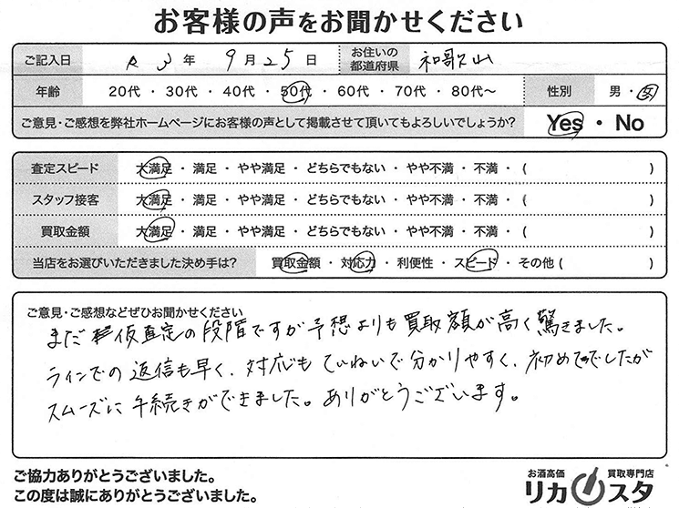 買取金額だけでなく対応力につきましてもご満足いただけ、大変嬉しく思います!