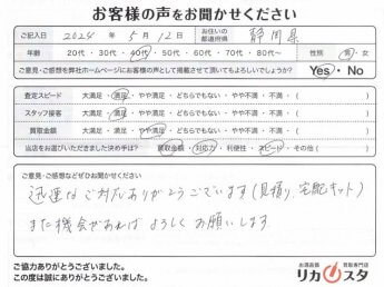お客様コメント 最初の査定回答に対して、再査定を電話でお願いしたところ、すぐに回答ありスピード対応が満足のいくお取引でした。電話対応の女性もスピーディーで良 […]