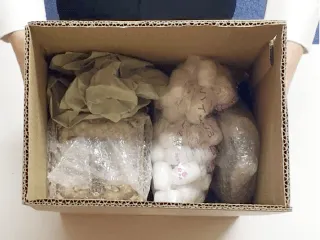 箱・緩衝材・申込書・返送用伝票を全てセットにした宅配キットをお届けします。箱に詰めて送るだけ!!