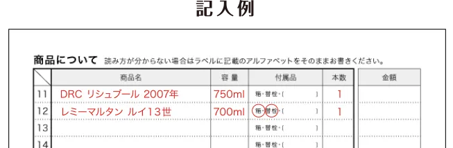 売りたいお酒のリストを作成します。下記情報をご記入いただきますとより正確なお見積もりが可能です。