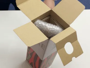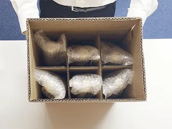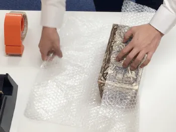 箱の中でカタカタ動くような場合、箱の中も緩衝材やクッションペーパで隙間を埋めて頂きましたらより安全です。