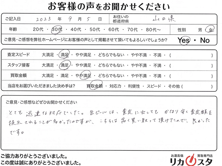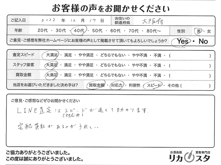 お客様コメント とても迅速な対応でした。 缶ビールは、査定に出してもかなり安く査定額を提示されることが多かったのですが こちらは高く買い取って頂けたので、良 […]