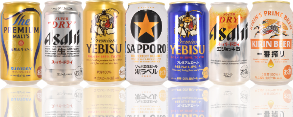 アサヒスーパードライ、キリン一番搾り、サッポロ黒ラベル、サントリープレミアムモルツ、エビスビール、サッポロクラシック、キリンラガー、サントリー金麦、よなよなエール、水曜日のネコ、インドの青鬼、常陸野ネストビール、志賀高原ビール、ベアレンクラシックなど
