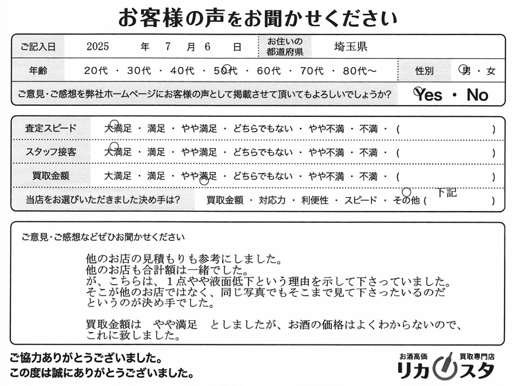 外箱の有無、ボトルの汚れ、液漏れや液面低下がある場合でもお買取り可能です。