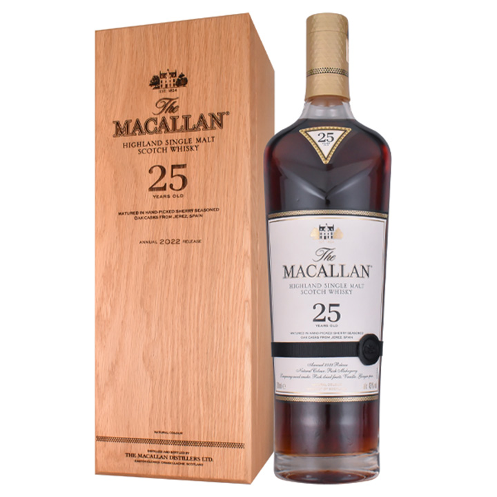 マッカラン 25年は、厳選されたスパニッシュオーク樽で最低25年間熟成させた原酒のみを使用したまさにラグジュアリーなシングルモルトウイスキーです。