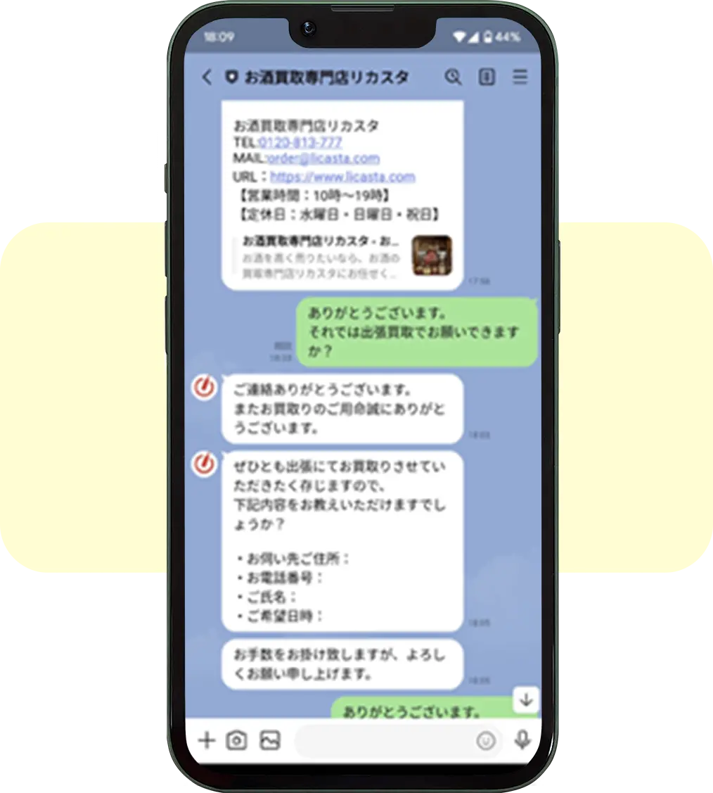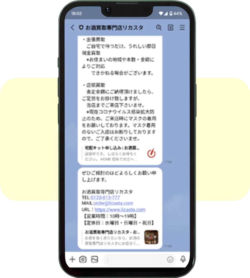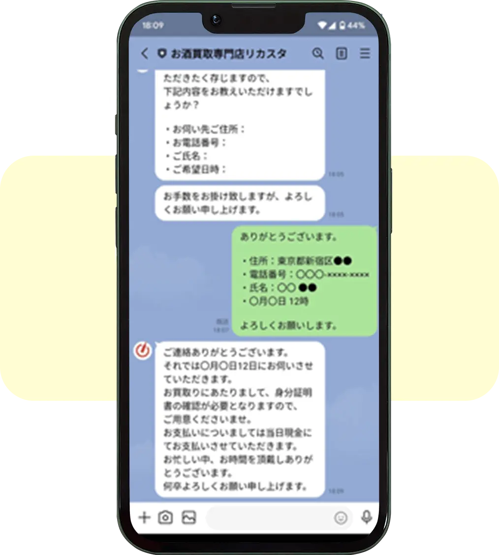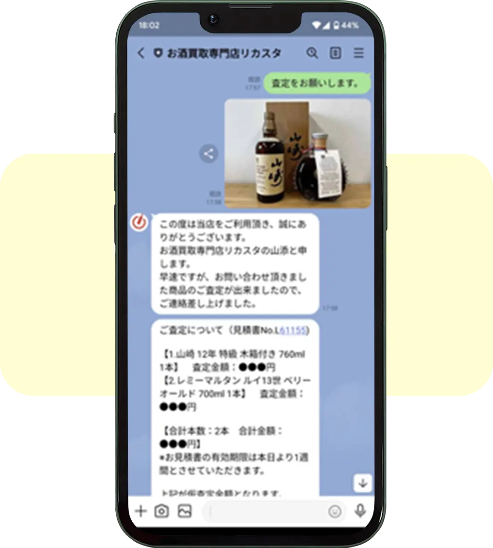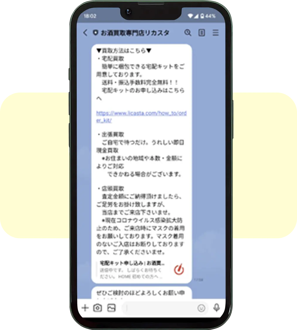 リサイクル店や他の専門店では、複数の中間業者が入り、流通コストやマージン、手数料が発生し、買取価格が圧縮されてしまいます。リカスタでは、お客様からお売りいただいたお酒を、飲食店やコレクター、海外への独自ルートなどに直接販売させていただいておりますので中間マージンがかかっておりません。