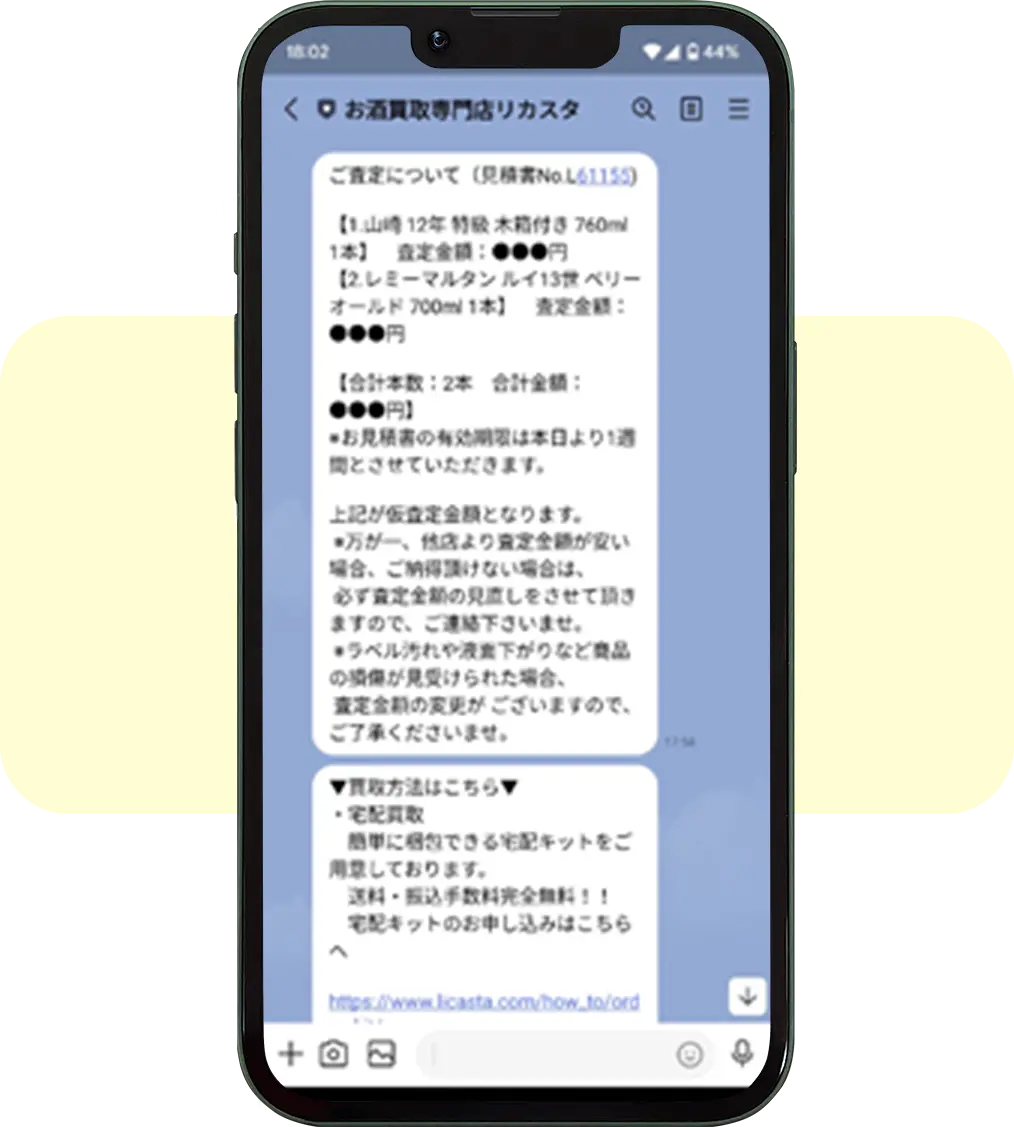 上記は代表的な銘柄の参考買取価格です。もちろんその他のお酒も高額で買い取らせていただきます!リカスタでは、原則すべてのお酒を買い取らせていただきますので、お気軽に無料査定をご依頼ください。担当スタッフが丁寧にご対応いたします。