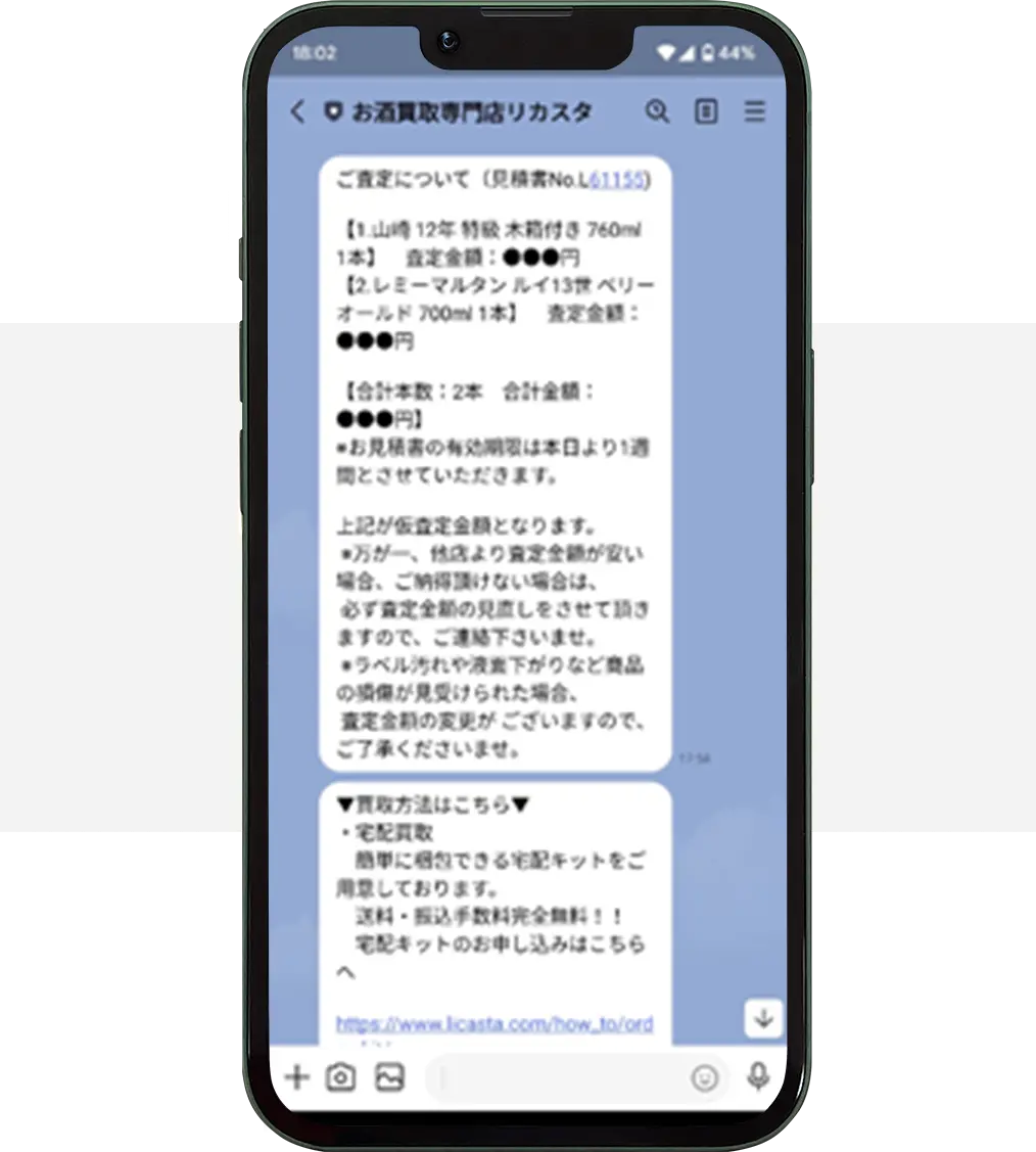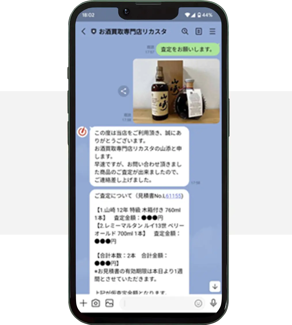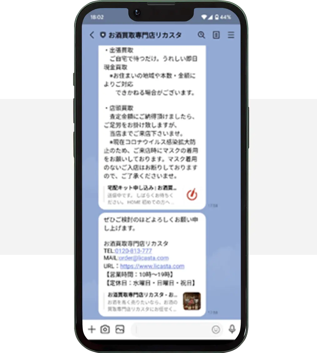 今回、リカスタさんに出張買取を依頼した決め手は、価格ではなく電話応対が丁寧で印象がよかったから。飲食店を営む中、定期的にお酒の在庫を整理するのですが、今回大量に処分しないといけなくなり困っていました。ほとんどがワインで、さらに本数も多いので買取してもらえるか不安でしたが、すぐに出張買取にきてくれ安心しました!また何かあれば相談しようと思います。