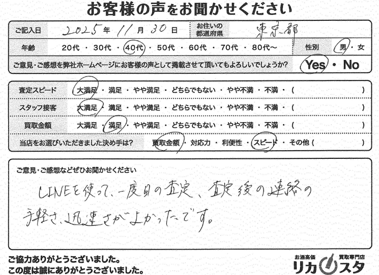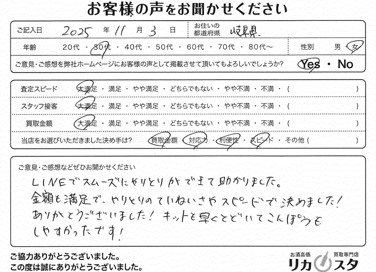 お客様コメント LINEでスムーズにやりとりができて助かりました。金額も満足で、やりとりの丁寧さやスピードで決めました!ありがとうございました!宅配キットも […]