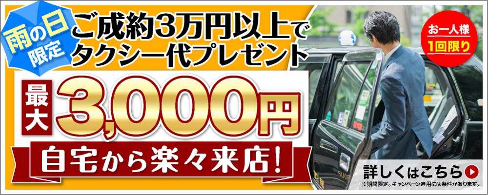 当店にご来店いただく際のタクシー代金を最大3,000円まで負担いたします!!